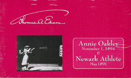Die berühmte Wild-West-Darstellerin Annie Oakley wurde von Thomas A. Edison beim Schießen gefilmt (Sehen Sie die komplette Szene oben rechts). Das Daumenkino zeigt einen Ausschnitt aus dieser berühmten historischen Filmsequenz von 1894 als reprint.